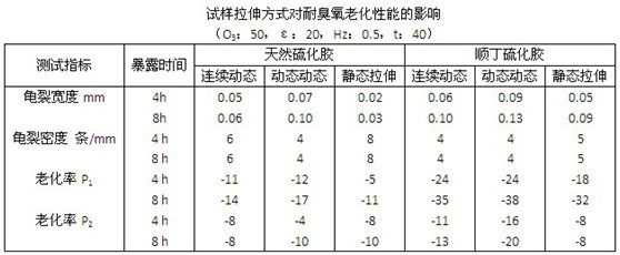 橡膠試樣的拉伸可分為靜態拉伸和動態拉伸。動態拉伸又有兩種方式,即連續的動態拉伸和間斷的動態拉伸。臭氧老化試驗箱GB/T13642-1992標準為簡便敘述和區分,將國際標準規定的連續動態方式簡稱為A式,將間斷動態拉伸方式簡稱為B式,其中又將它們劃分為a法和b法兩種暴露方法。試驗拉伸方式不同,試驗結果是不一樣的,下表給出了不同的拉伸方式對試樣耐臭氧老化性能影響的試驗結果。從表中可見,在相同的暴露時間下,試樣在間斷動態拉伸下試驗比連續動態拉伸下試驗的臭氧龜裂較嚴重,拉伸強度和扯斷伸長率也下降較大,而連續動態拉伸的試樣又比靜態拉伸的試樣臭氧老化較嚴重。可見,動態拉伸試驗法能較快獲得臭氧老化試驗箱做老化試驗的結果。但試驗選用哪種方式和方法,應根據實際使用情況和試驗要求來確定。
